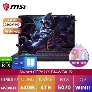 | 소드 GF76 HX | i9-14900HX | RTX 5070 | 최대 64GB | 최대 4TB | 17.3인치 |
